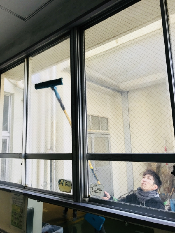高くて難しい高所の窓ガラス、オフィスなど窓の真下にパソコンなど