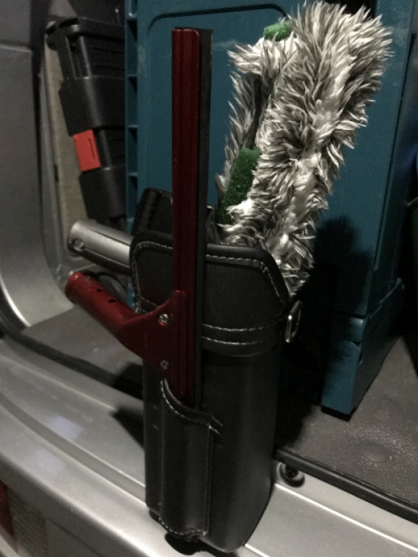最近は35センチのシャンパーとスクイジーを使用してまして、一般家庭の窓サイズなら35でも十分です。