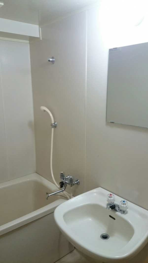 お写真は東久留米市内の1Rの間取りで、洗面、トイレ、お風呂がひとつになったタイプです。