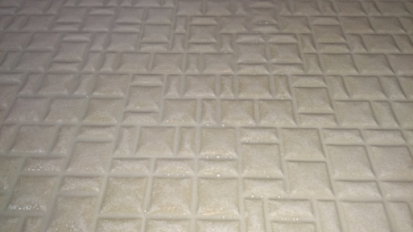 添付写真のようなザラザラした素材のお風呂場の床(カラリ床)などは一度汚れてしまうとお掃除が大変になってしまうこともあります。