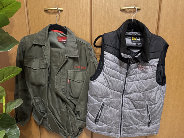 当社でもこれは基本スタイルですが、たまにパーカーやベストを着用したり、
