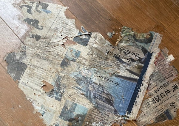 「床に新聞紙が張り付いてしまって剥がれない!」