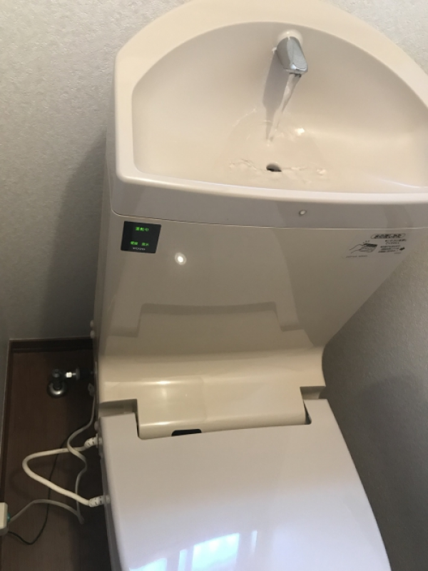 しかし、こちらのお客様はほんの1ヵ月前に他店でトイレクリーニングを施工したばかりとのことで、実際にそのトイレを見てみると、ドア開けてたったままチラッと見ると確かに綺麗っぽい感じでした。写真のトイレが作業前ですが、手洗いタンクの水垢、蛇口の水垢、ウォシュレットの脱臭フィルター、給水ホースの埃、巾木の埃、照明の埃など手付かずの状態でトイレ室にはトイレ特有の臭いもこもってました。