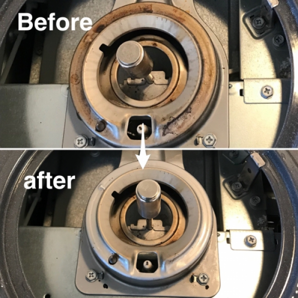 今回は神奈川県藤沢市にてガスコンロのハウスクリーニングです。コンロの天板、五徳、魚焼きグリルはもちろんのこと、キラッとハウスのコンロクリーニングでは普段ご家庭ではなかなかお掃除しないような本体側の金属部分も可能な限り清掃します。写真のこの部分は簡単に外せますし、または外さなくても清掃できる部分です。