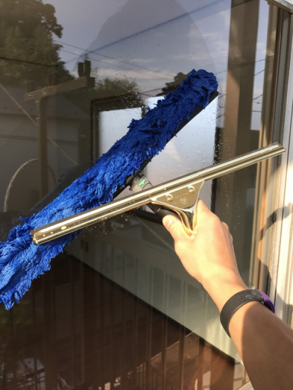 西日でもガラス清掃の痕跡、スジ、拭き残しは