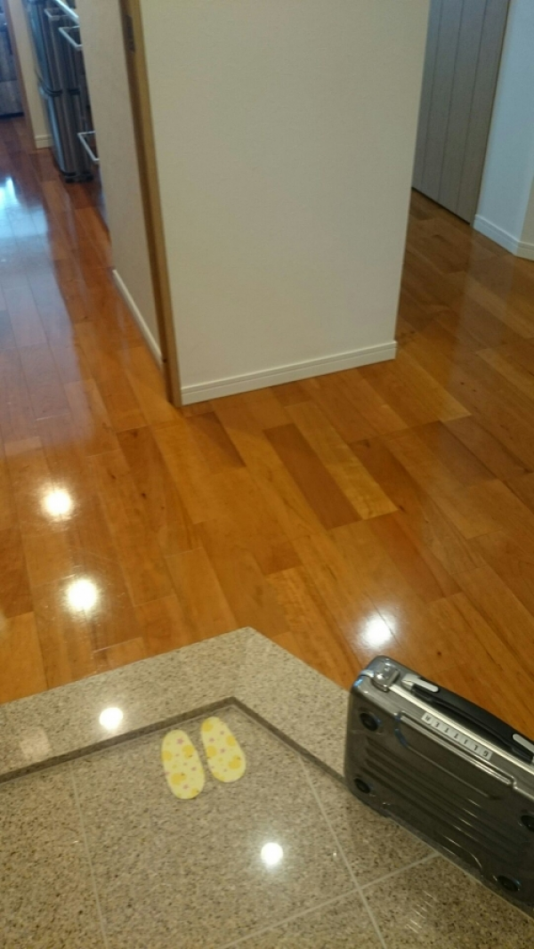 こちらは水回りやお食事するリビングなど、水滴が飛び散るような場所に最適な特に水に強い耐久性のあるワックスをお客様のご希望、ご予算の中で施工させて頂きました。