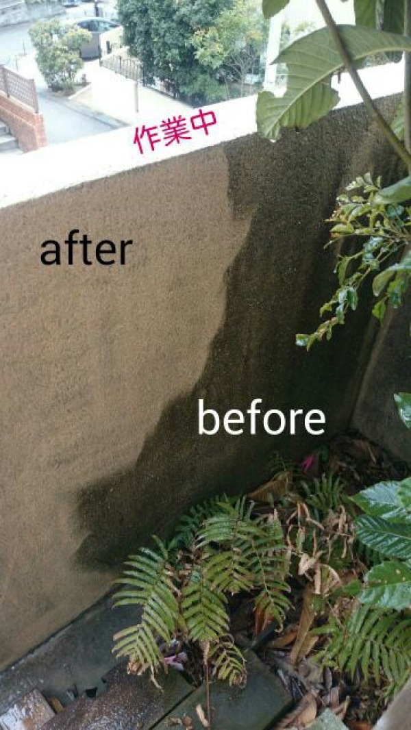 藤沢市で外壁の高圧洗浄のご依頼でした。外壁と言いますか、外の塀のお掃除です。