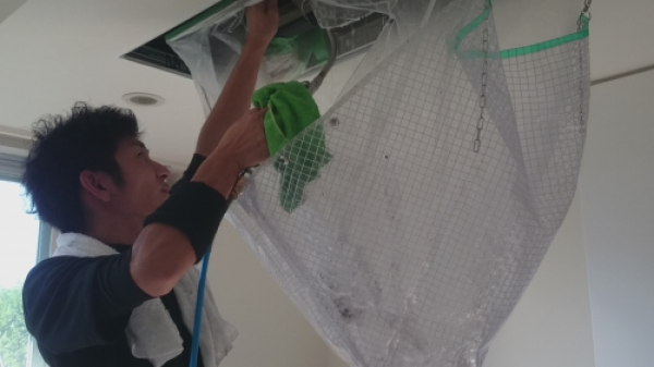 横浜市戸塚区にて天井に埋め込まれているエアコンのお掃除を行いました。エアコンはどんなタイプでもお掃除致します。