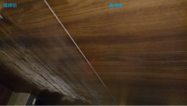 また、素材の表面が鏡面、光を反射するような壁の場合、コンパウンド、クレンザーで擦ると擦り跡の線傷がつく恐れもありますので、注意が必要です。