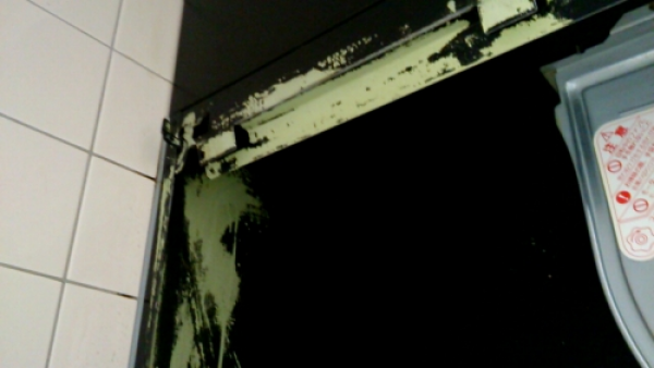 この状態で換気扇のお掃除をするとご家庭で市販品の洗剤や、お水で擦っただけでも剥がれる場合があります。