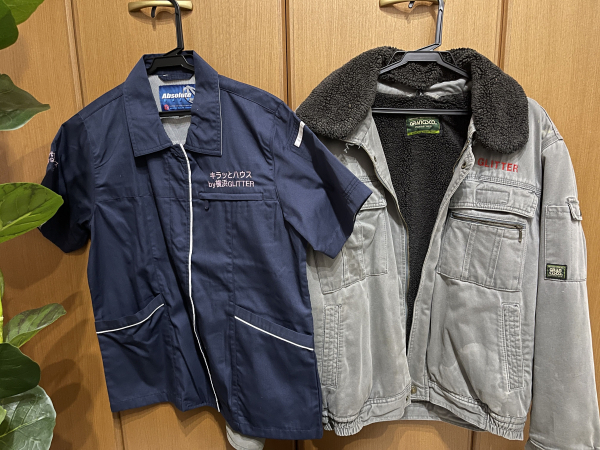 当社でもこれは基本スタイルですが、たまにパーカーやベストを着用したり、