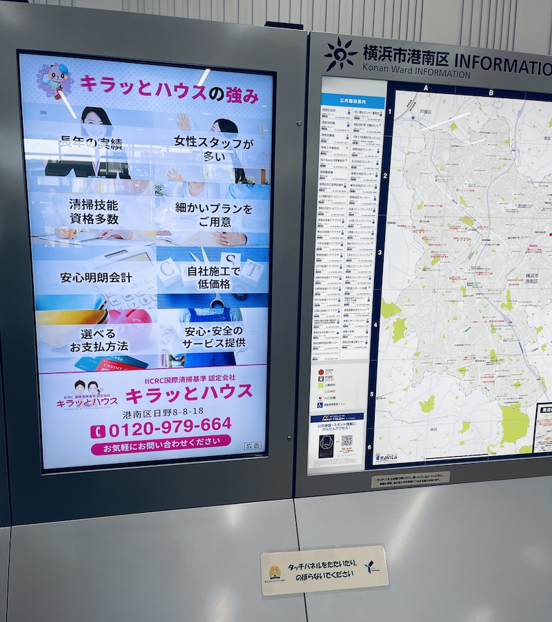 この度、港南区役所内にある1階のデジタル案内板で、